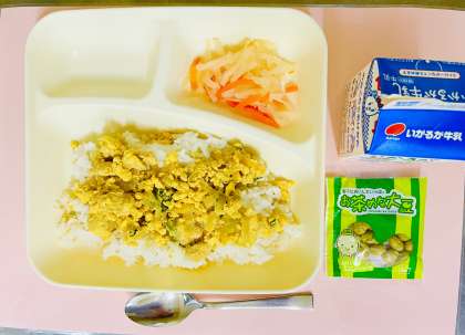 カリカリの大豆に抹茶と砂糖をまぶして味付けしたものです。食感も良く、子どもたちに人気がありました。
