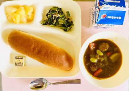 子どもたちが大好きな食材がたっぷり入った献立です。どの学年でも大好評で、食缶が空っぽになって返却されました。