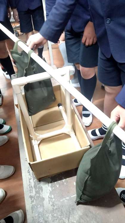 班で協力して、ぴったりつり合う場所を探していました。