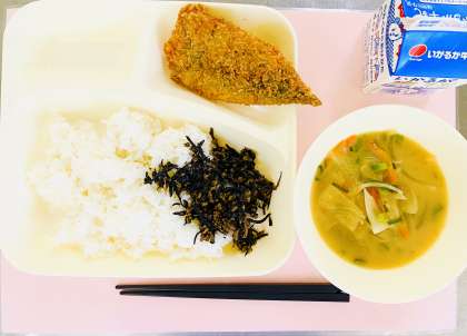 牛ひき肉とひじきを甘辛く味付けしています。ご飯のすすむ献立でした。