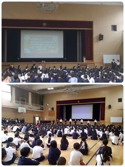木曜日に行われた児童朝会では、各委員会の委員長が挨拶をしたり、代表委員の児童が自分の担当の学級を伝えたりしました。