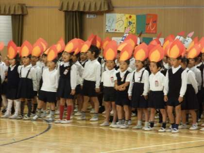 1・2年生は、104歳の学校の年齢をろうそくのほのおに見立て、スタンツと歌を披露してくれました。とてもかわいい演技で、会場の皆さんも微笑んでおられました。