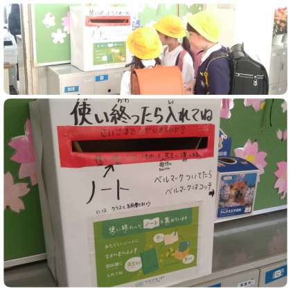 環境委員会が使い終わったノートを回収しています。