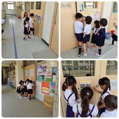 2年生のお兄さんお姉さんが、聖和小学校を1年生に案内してくれました。