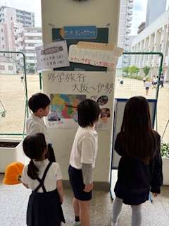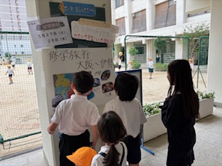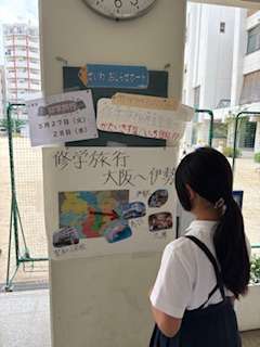 聖和小学校の校内には、6年生が掲示してくれた修学旅行の行き先が紹介されています。