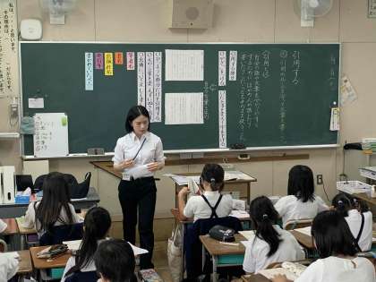 四年生の国語の授業で「引用する」の学習をしました。子どもたちは教科書の説明文「ヤドカリとイソギンチャク」から引用を探し、文章に取り入れる練習をしました。授業では、まず引用の重要性と方法について説明し、その後、心に残る一節を引用し、感想文に活かしました。子どもたちは熱心に取り組み、引用の技術を身につけました。