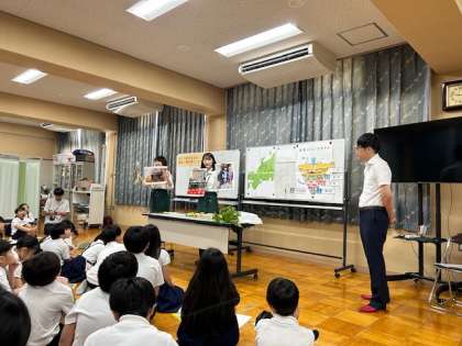 JA全農長野の方々が出前授業に来てくださり、野菜や果物を食べることの大切さを学びました。お土産として、1人1玉レタスをいただきました!野菜と果物の力を借り、毎日健康に過ごしましょう!