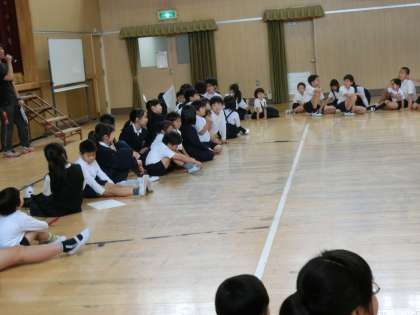 「6年生を探せ!ゲーム」も大盛り上がりです。早く見つけてもらってうれしそう子や、なかなか見つけてもらえなくてハラハラしている子など、とてもいい雰囲気で45分が終わりました。