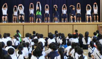 昨年度からは、教室で椅子に座ってできる体操に取り組んでおり、