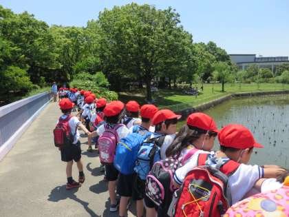 5月13日の金曜日、ピカピカの晴天に恵まれ、1年生と2年生が1・2ペアで春の遠足に行ってきました。電車の中でのマナーや道路の歩き方など、1年生のお手本となるよう、頑張りました。班遊びでは、1年生の手を引いて、優しく気遣ってあげたり、トイレに一緒にいってあげたりと、頼りがいのある2年生ぶりを発揮していました。大きなけがもなく、楽しく過ごすことができました。