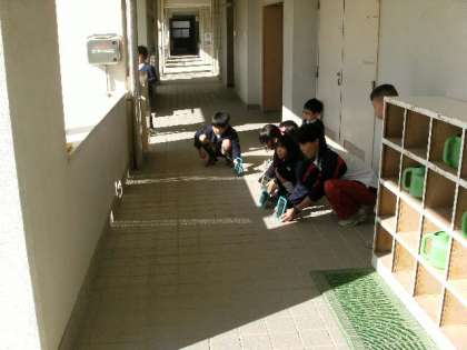 3年生では、理科の学習で鏡を使って日光を跳ね返して光の性質を調べていました。