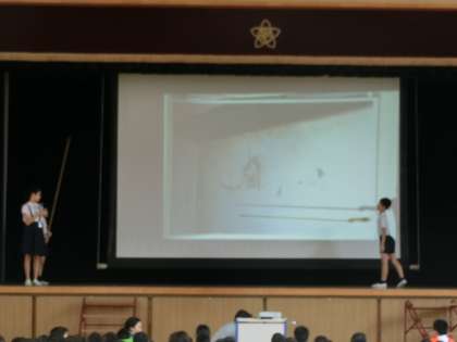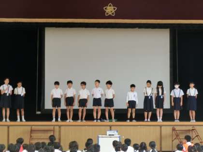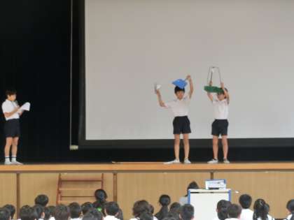 児童集会で、美化委員会の子どもたちが発表をしました。