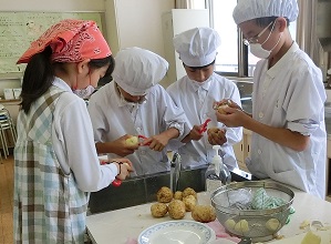 さらに、先日、学習園で収穫したジャガイモを使って粉ふきいもも作りました。