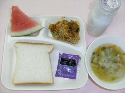 ・すいかの中心の甘い部分が全員にいきわたるよう、64分の1に切り分けていただきます。