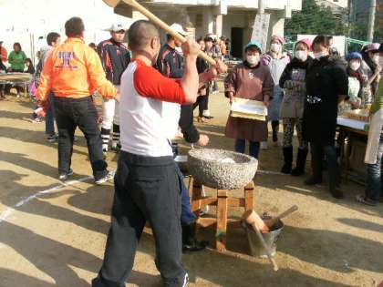 写真は聖和フェスタ実行委員長の餅つきのスナップです。