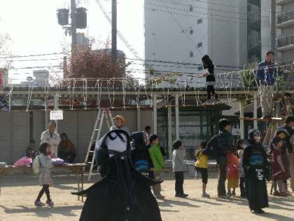 ボーイスカウトも体験アスレチックをつくってくださいました。子ども達はこわごわ進んでいましたが、とってもよい体験ができました。
