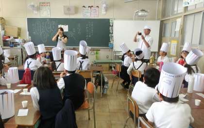 「味覚のの一週間」実行委員会からシェフの方が来られて授業をしてくださいました。