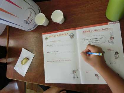 塩(塩味)、酢(酸味)、ダークチョコレート(苦味)、砂糖(甘味)を少量ずつ舌で味を確かめながら体験していきました。