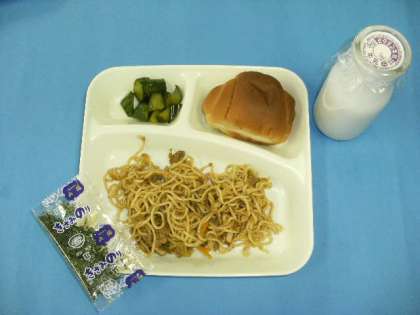 1人1袋ずつあてのきざみのりを、食べる直前にかけることにより風味が増します。子どもたちに大人気の献立です。