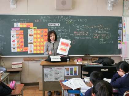 普段何気なく食べているおやつの中にはしぼうの多く含まれているものや少ないものがあることを知りました。エネルギーのもととなりますが、脂肪にもなることから、取りすぎたらしっかり運動しなければいけないことも学習し、感想にも書いてる児童が多くいました。