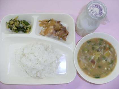 さつまいもの他に、豚肉、ごぼう、もやしなどが入った、子どもたちに人気の甘めのおみそ汁です。