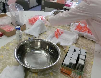 歯科衛生士の方に来ていただき、歯磨きの大切さや歯ブラシの仕方などを教えていただきました。