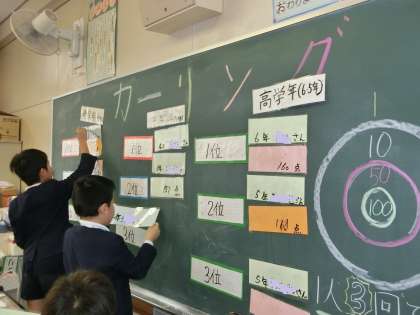 今日は「ハッピークリスマス集会」がありました。例年お誕生日集会としてにこにこ班でお店を出していたのを 今年は学級単位で出店することになり、4年1組は「カーリング」。はりきりってテープはったり、ポスター描いたり、なんてすごい行動力!!指示がなくても自主的に活動する姿はさすが4年生。それぞれがそれぞれの役割を果たし、充実の時間でした。