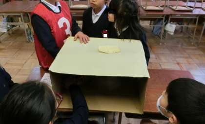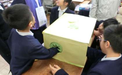 4年生の一クラスでは「箱の中身はな〜に?」をしました。