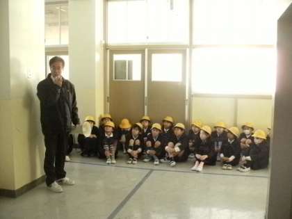 訓練情報にしたがい、子どもたちは迅速かつ冷静に運動場へ避難することができました。