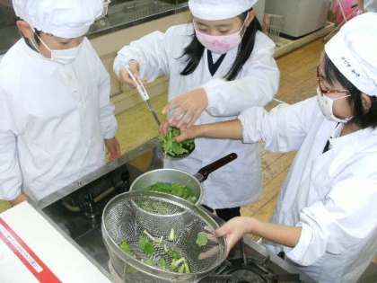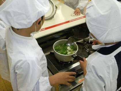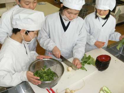 収穫した天王寺かぶらを使って、味噌汁作りに挑戦しました。