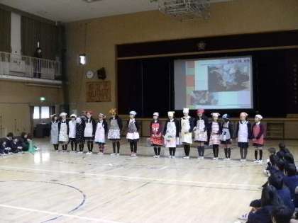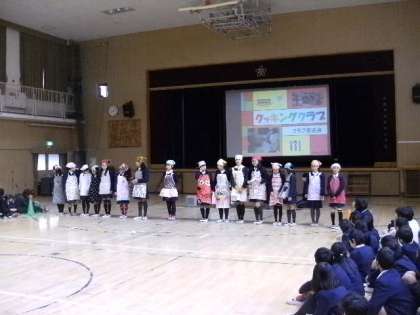 計画、買出し、調理、試食までの流れをエプロンを身に付けて発表しました。