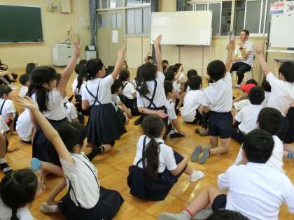 今年はじめての 外国語活動がありました。先生は、スズキ二ノ先生。