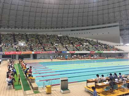 今日は門真市の東和薬品ラクタブドームにて第52回大阪市児童水泳記録会が行われています。