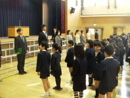 「みなさんの元気なあいさつの声を聞いて、やる気が伝わってきました。新しく65名の1年生が入学してきました。皆さんは聖和小学校の先輩として優しく親切にしてあげましょう。これから1年間、努力を続け、友達をたくさん作って、ともに高め合うようにしましょう。」とお話をされました。