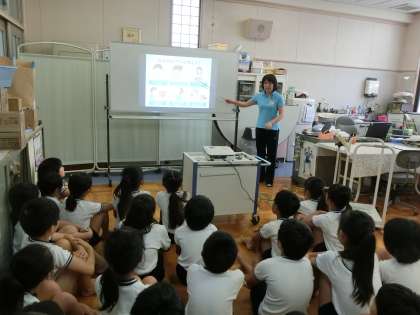 8月30日(水)に発育測定と一緒に、かむことの大切さを学ぶ保健指導がありました。