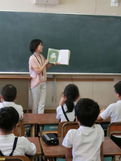 8月31日(木)に学校図書館補助員さんやコーディネーターの方から本の読み聞かせをしていただきました。