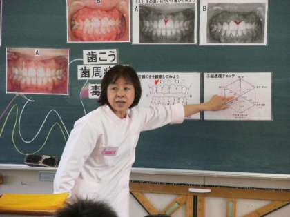 6年生はみんな一生懸命話を聞いて、歯を磨いていました。