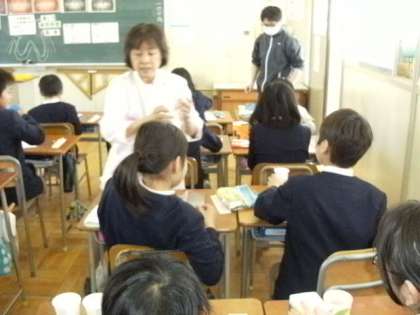 歯科衛生者さんが「噛む」ことの大切さや、だ液の役割などを教えてくださいました。