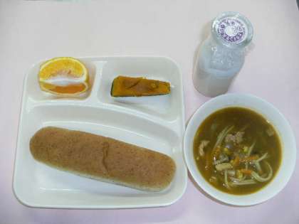 今年度から初登場のパンです。小麦粉のほかにライ麦粉と全粒粉を用いており、ライ麦の素朴な風味と香ばしさが感じられるパンです。ライ麦は食物繊維を多く含んでいます。
