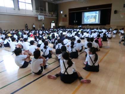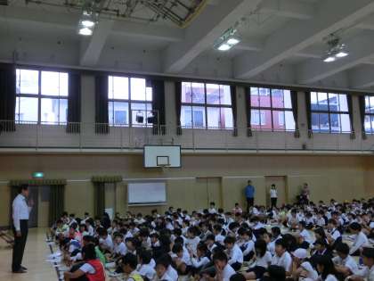 明日は土曜日で休日なので,今日講堂で集会を開きました。