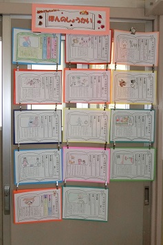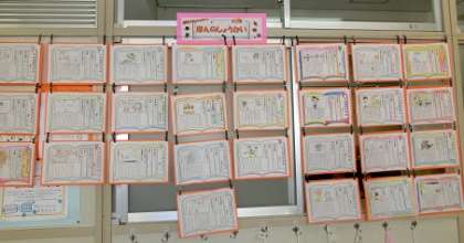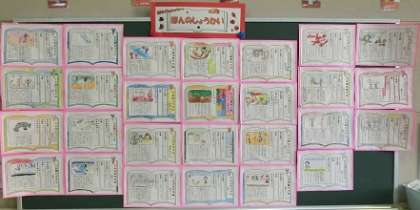 期間終了後から各学級内の黒板や廊下、教室前ドアや窓、階段の学年掲示の場所など、学年や学級で掲示する場所は様々ですが、多くの子どもたちが目につく場所で紹介しています。