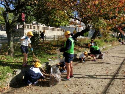 10日(金)、1年生と6年生はいつも自分たちが使っている寺田町公園の清掃を行いました(^O^)1年生も6年生も、公園内に落ちている枯れ葉やごみを、袋いっぱいに集めることができました♪地域の方々や保護者の方々にもたくさん協力していただきました(*^_^*)あっという間に清掃の時間が経ち、公園内はすっきりきれいになりました☆大切なわたしたちの寺田町公園、これからもごみは持ち帰り、みんなでいつもきれいに使っていきたいです!!