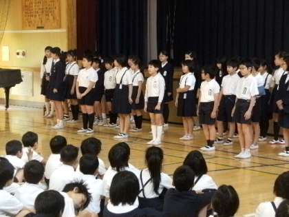 今日の児童集会では、各学級から選ばれた代表委員(4年生以上)や計画委員(4年生以上)、各委員会の委員長(6年生)の紹介がありました。