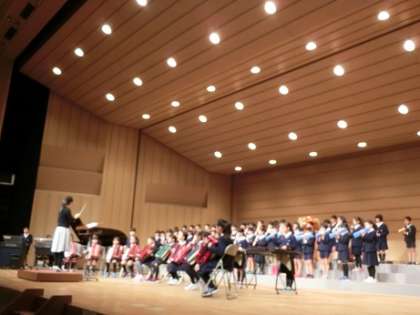 去年よりさらに一回り大きなホールで合唱や合奏を行い、同じ天王寺区の他7校、3年生から5年生まで様々な学年の演奏や歌を聴くことができました。