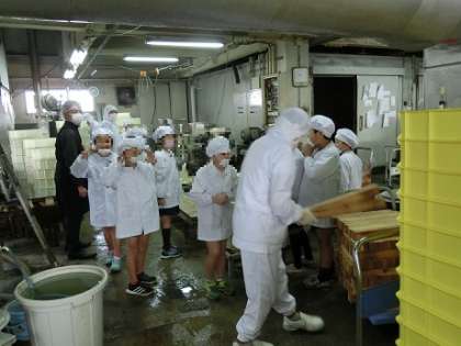 山田あられ工場の見学に行かせていただきました。もち米から製品が包装されるまで一枚丹念の作業工程を丁寧に説明してもらいながら見学し、工場ではたらく人の様子や商品について学習することができました。そして、おみやげもいただき大喜びでした。ここでも地域の力(おかげ)を感じ、社会科の学習だけでなく、とても良い勉強になりました。