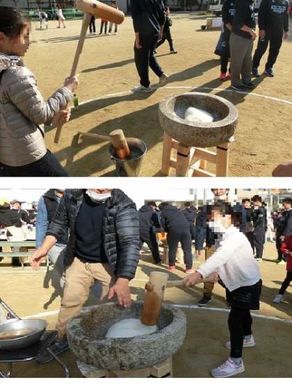 子どもたちはおもちを味わうだけなく、お餅つきもしたり、各ブースの食べ物を買ったり、コーナーを楽しんだりすることができました。