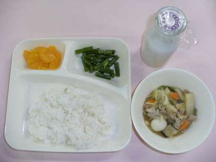 ★マメ知識★八宝菜の八宝とは、「いろいろな材料をとりまぜた」という意味です。今日の給食の八宝菜には、豚肉、いか、うずら卵、たまねぎ、キャベツ、たけのこ、にんじん、ピーマン、しいたけの9つの材料が入っています。