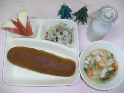 しめじ、エリンギ、マッシュルームを使用し、ベーコンで旨みを、生クリームでコクをだした子どもたちに人気のメニューです。