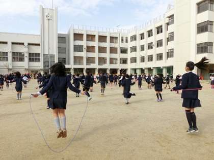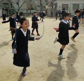 1月18日(木)〜31日(水)までの聖和タイムに全校児童が運動場に集まって色々な技を跳びます。