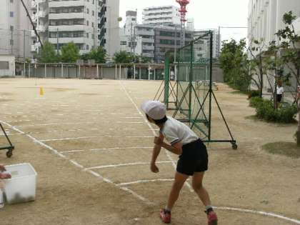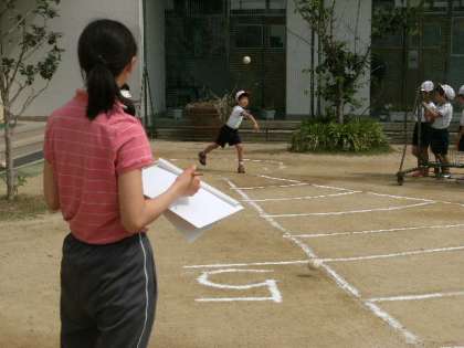 1年生は、初めての体力テストでとまどいもありましたが、みんなかわいいフォームで精一杯投げていました。